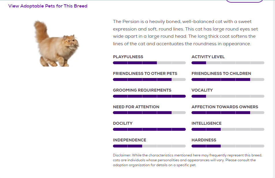 The Persian cat breed has a playful and gentle disposition; Their patience and friendly social nature make them great companions for households with children and other pets.
